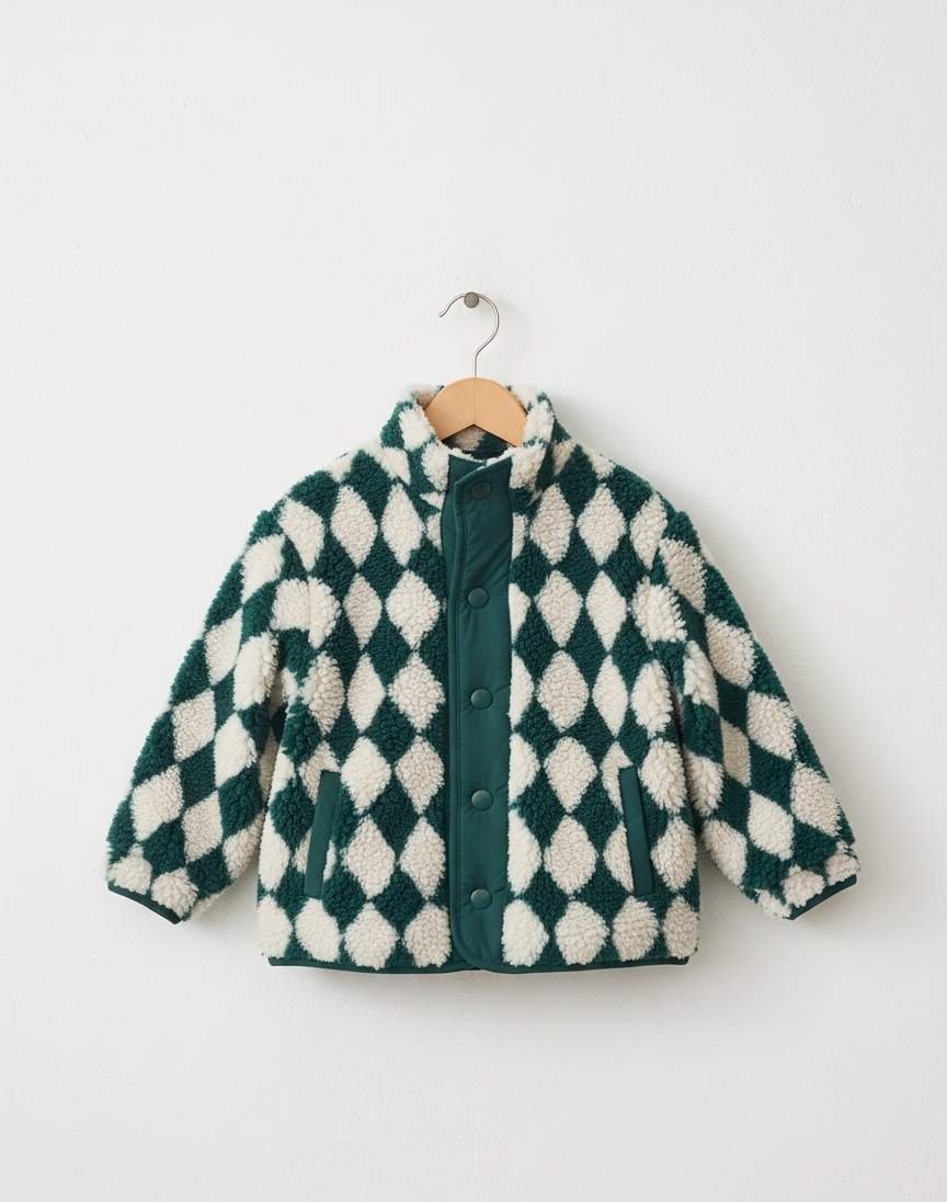 Green/White Harlequin Patterned Zip Through Fleece (3mths-7yrs)