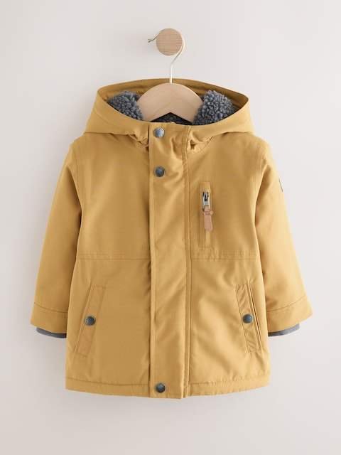 Ochre Yellow Waterproof Borg Lined Parka Coat (3mths-7yrs)