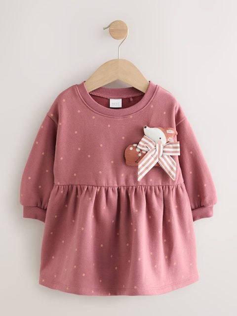 Rose Pink Deer Embellished Sweat Dress (3mths-7yrs)